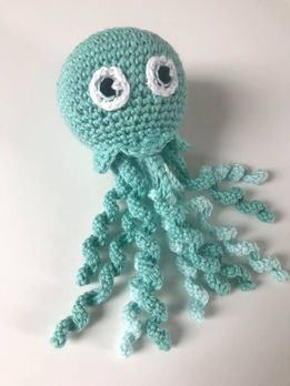 Monter fangarmene i de forskellige længder fordelt i bunden af kroppen. Jeg har valgt at placere farve 2 inderst og de andre rundt omkring dem. Sørg for at få monteret armene grundigt, så de kan rives i og leges med.